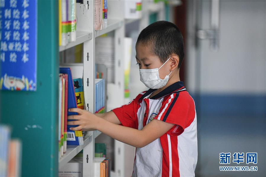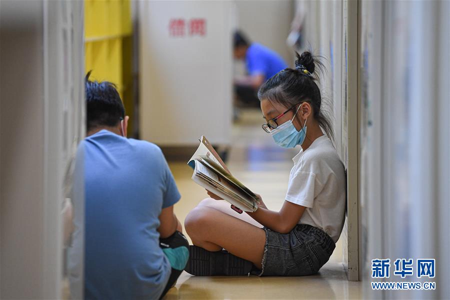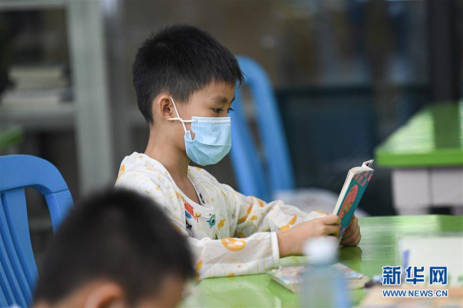 8月8日,小朋友在位于海口的海南省圖書館閱讀書籍。新華社記者 蒲曉旭 攝