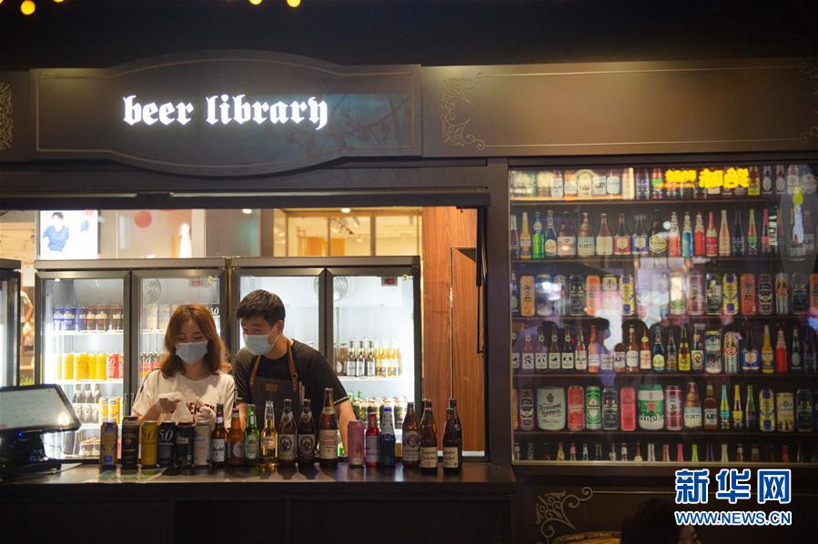 這是8月8日晚在望京小街商業街拍攝的一家啤酒商店。新華社記者 陳鐘昊 攝