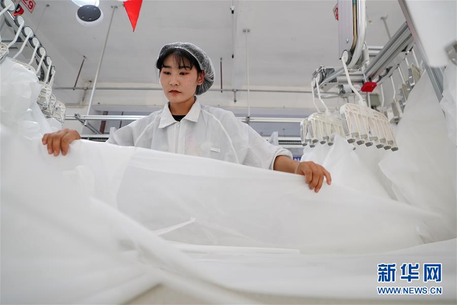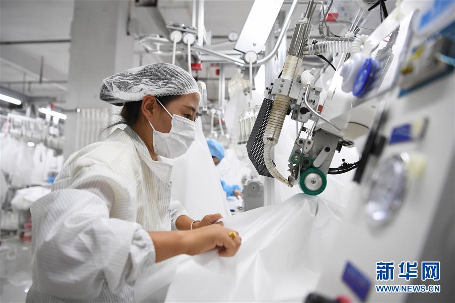8月9日,甘肅拓奇扶貧車間的員工在服裝加工生產線上作業。甘肅拓奇扶貧車間位于甘肅省臨夏回族自治州積石山縣,是依托東西部扶貧協作平臺引進的服裝加工企業。扶貧車間建成投產以來帶動就業近300人,其中吸納建檔立卡貧困戶就業110人,實現了貧困群眾就地就近就業增收的目的,為助推當地脫貧攻堅及縣域經濟發展發揮了重要作用。新華社記者陳斌攝。