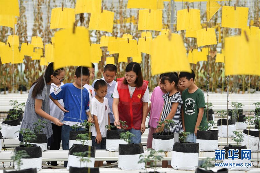 8月9日,在花崗鎮現代農業示范區一家蔬菜種植企業內,志愿者向小朋友介紹蔬菜種植模式。當日,安徽省肥西縣花崗鎮開展暑期“親近自然體驗田園”活動,邀請轄區兒童參觀花崗鎮現代農業示范區,感受現代農業的魅力。新華社記者劉軍喜攝。