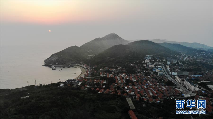 這是8月10日清晨拍攝的山東省長島綜合試驗區砣磯島海上日出(無人機照片)。近年來,山東省長島綜合試驗區不斷加大生態保護力度,區域內諸島盡顯秀美的美麗生態海島自然風貌。新華社記者王凱攝