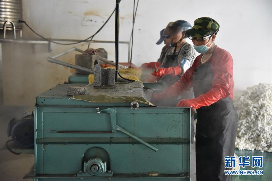 在貴州省畢節市納雍縣勺窩鎮,納雍縣瑞慧桑蠶養殖發展有限責任公司工作人員在蒸煮蠶繭(7月21日攝)。新華社記者駱飛攝。