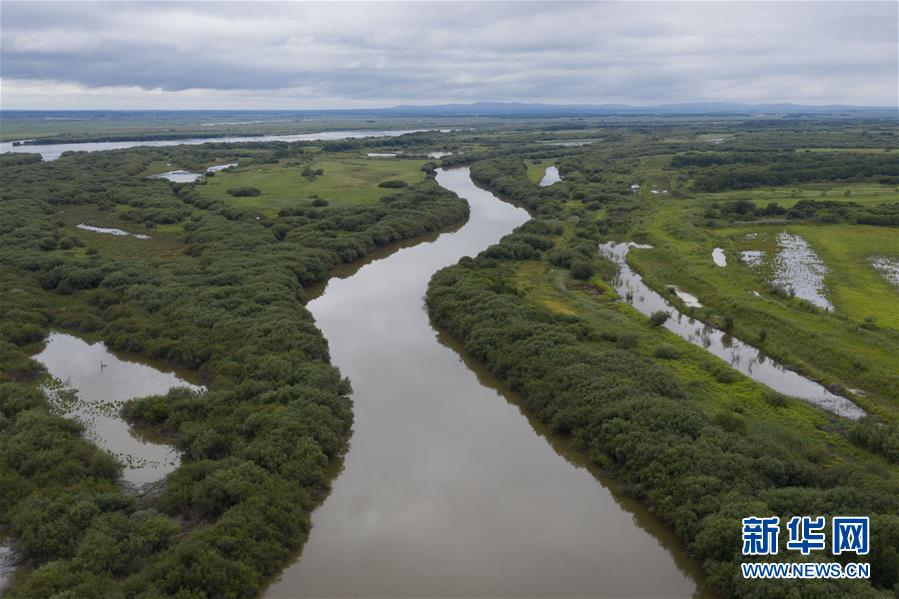 這是8月9日拍攝的黑瞎子島國家級自然保護區景象(無人機照片)。黑瞎子島國家級自然保護區主要保護對象包括黑瞎子島原始的濕地生態系統及丹頂鶴、東方白鸛、黑熊等珍稀動物。新華社記者謝劍飛攝。