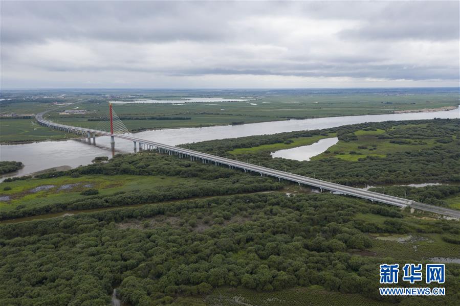 這是8月9日拍攝的黑瞎子島國家級自然保護區景象(無人機照片)。黑瞎子島國家級自然保護區主要保護對象包括黑瞎子島原始的濕地生態系統及丹頂鶴、東方白鸛、黑熊等珍稀動物。新華社記者謝劍飛攝。