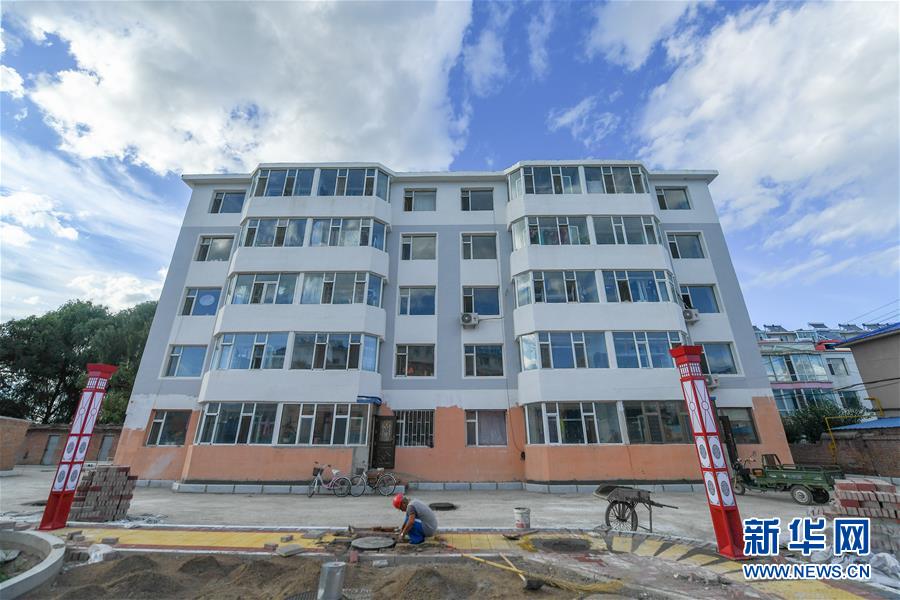 這是鎮賚縣慶余社區一個改造后的老舊小區樓體外部(8月11日攝)。2019年底開始,吉林省白城市鎮賚縣對超過20年房齡的老舊小區進行全面改造升級,優先完成樓體內外墻面、樓頂防水、道路硬化工程,并協調各職能部門對地下管網、綠化美化等基礎設施問題進行統籌施工,減少后期二次施工造成的環境破壞和資源浪費。一期工程預計于今年10月完工,施工完成后,政府相關部門將為這些小區統一配備物業公司,解決后期設施維護問題。新華社記者張楠攝