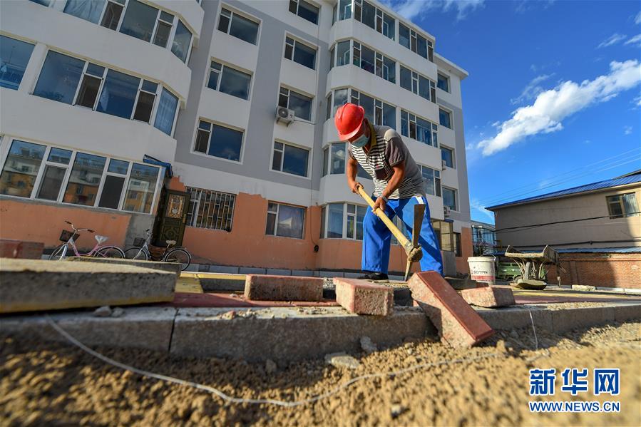 8月11日,工人在鎮賚縣慶生社區一老舊小區內鋪設路面方磚。2019年底開始,吉林省白城市鎮賚縣對超過20年房齡的老舊小區進行全面改造升級,優先完成樓體內外墻面、樓頂防水、道路硬化工程,并協調各職能部門對地下管網、綠化美化等基礎設施問題進行統籌施工,減少后期二次施工造成的環境破壞和資源浪費。一期工程預計于今年10月完工,施工完成后,政府相關部門將為這些小區統一配備物業公司,解決后期設施維護問題。新華社記者張楠攝