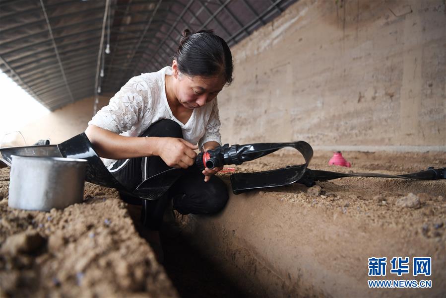 8月11日,在甘肅省臨夏回族自治州臨夏縣先鋒鄉(xiāng)前韓村,搬遷戶朱懷蘭在日光溫室內(nèi)勞作。近年來,甘肅省臨夏回族自治州臨夏縣把易地扶貧搬遷作為打贏脫貧攻堅戰(zhàn)的重要任務(wù),科學(xué)推進(jìn)易地扶貧搬遷和脫貧攻堅工作。為了讓搬遷群眾能夠安居樂業(yè),當(dāng)?shù)卣⒅胤龀趾罄m(xù)產(chǎn)業(yè)發(fā)展,引導(dǎo)搬遷群眾發(fā)展日光溫室、布鞋加工、觀光農(nóng)業(yè)、特色種養(yǎng)殖等產(chǎn)業(yè),幫助搬遷群眾實現(xiàn)就近就業(yè)、拓寬增收渠道,確保搬遷群眾“搬得出、穩(wěn)得住、有事做、能致富”。新華社記者陳斌攝
