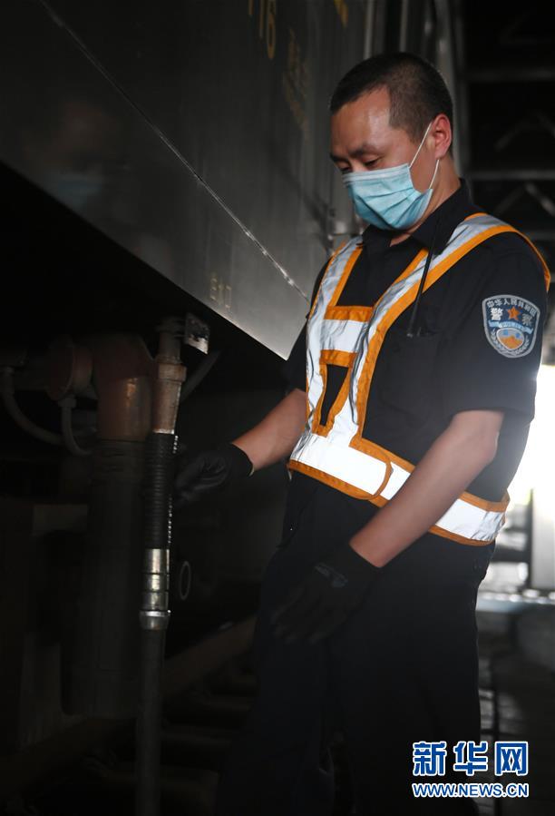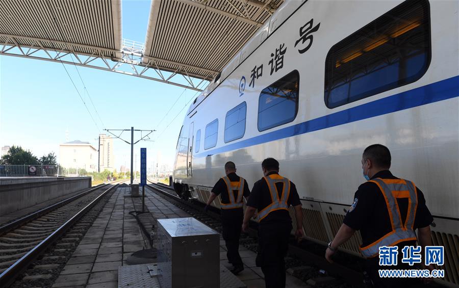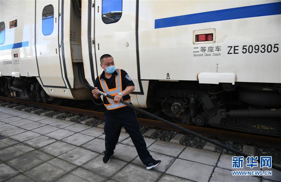 8月12日,長春火車站客運(yùn)車間上水班組趕往下一個(gè)作業(yè)站臺。新華社記者 林宏 攝