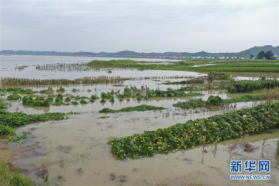 8月12日,重慶市潼南區桂林街道雙壩村蔬菜基地,部分低洼地帶的農作物被洪水淹沒(無人機照片)。受強降雨影響,涪江潼南段迎來過境洪水。新華社記者 黃偉 攝