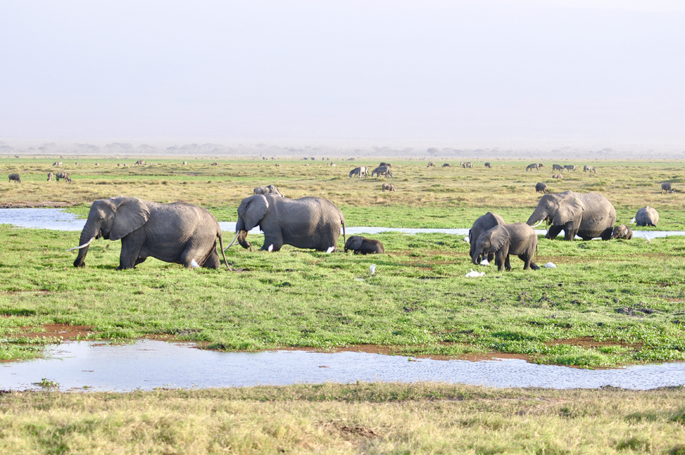 肯尼亞東南部,與坦桑尼亞接壤的安博賽利國家公園,距內羅畢240公里,因水草豐美而成為野生非洲大象的樂園。