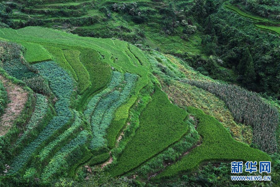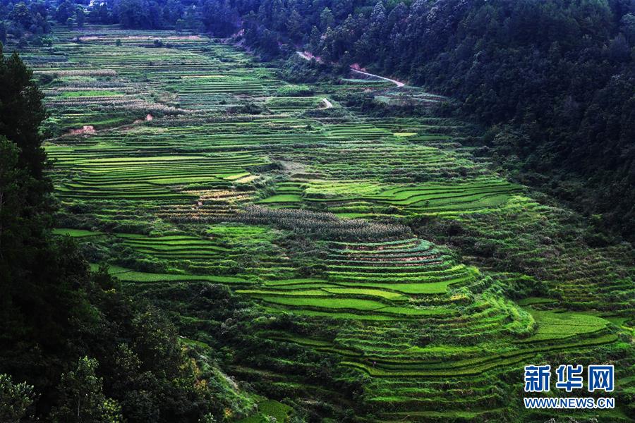 這是8月13日拍攝的鞍子鎮大林村梯田景色。時下,重慶市彭水苗族土家族自治縣鞍子鎮大林村的梯田景色迷人,構成一幅幅山鄉田園美景。新華社記者王全超攝