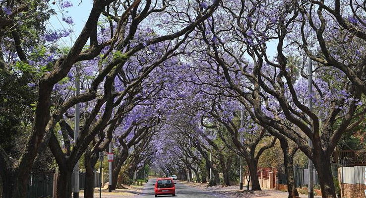 每年十月,種植有數萬株藍花楹樹的比勒陀利亞都會成為一片紫色的海洋,故有“藍花楹之城”美譽。