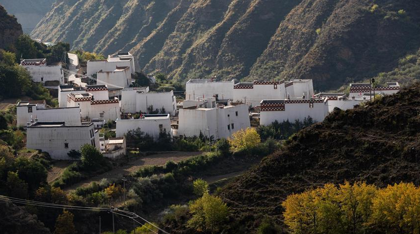深秋時節,四川省甘孜藏族自治州鄉城縣河谷地帶的民居像一顆顆白色珍珠點綴在色彩斑斕的田園中,形成一幅幅藏鄉田園畫卷。