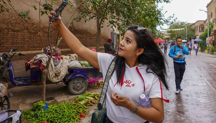 盛夏時節,位于西藏拉薩市的南山公園綠意盎然,風景如畫。