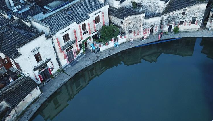 盛夏時節,晨光中的安徽黟縣宏村風景區呈現出一片迷人的景象,美不勝收。