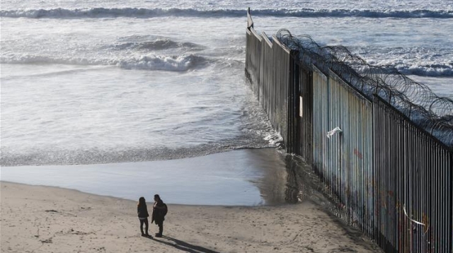 在墨西哥邊境城市蒂華納的海岸邊,一堵數米高的邊境隔離墻從海水中豎起,向東延伸,不見盡頭。