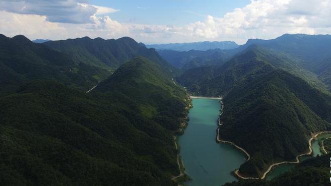 8月10日,重慶市武隆區天氣晴好,青山綠水與藍天白云交相輝映,秀美如畫,令人心曠神怡。