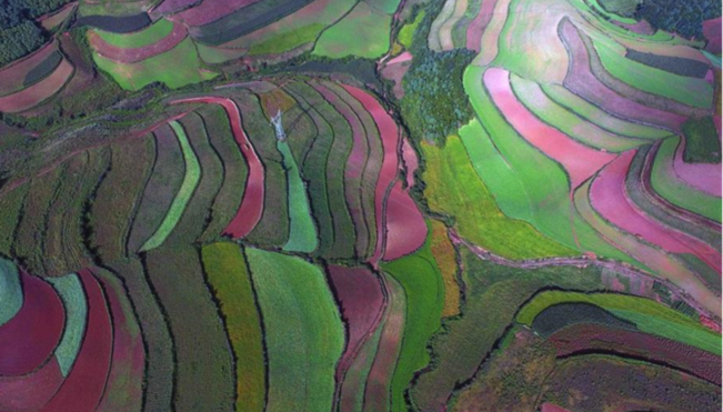 入秋以來,位于云南省昆明市東川區的紅土地五彩斑斕,絢麗多姿。