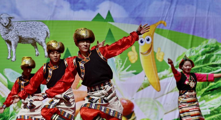 近日,西藏日喀則市白朗縣1.46萬畝瓜果蔬菜喜獲豐收。百姓們在縣里的豐登廣場載歌載舞,慶祝白朗縣第九屆果蔬采摘節(jié)。
