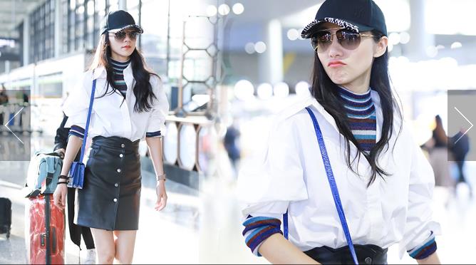 10月31日,上海,奚夢瑤現身機場, 她穿帥氣牛仔裝露細腰長腿,身材好到爆。