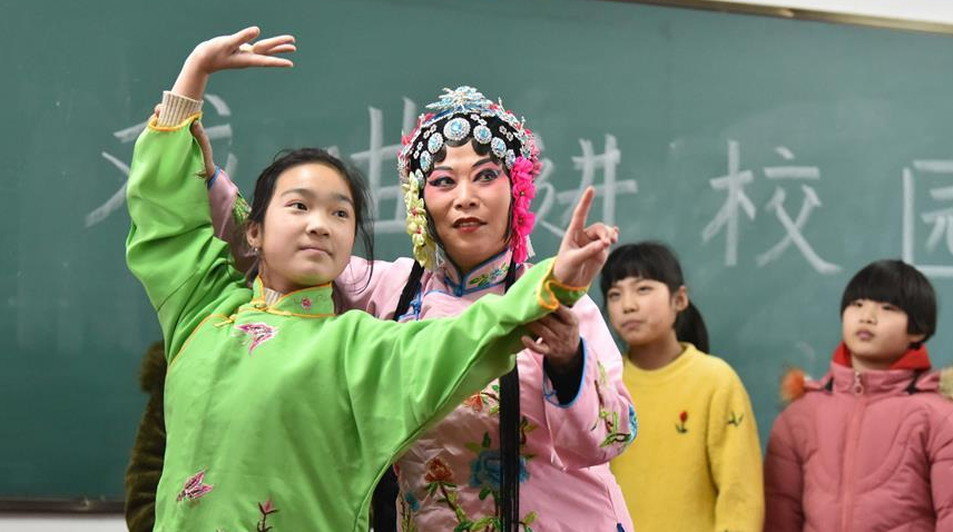 近年來,河北省定州市明月店鎮吳咬村小學積極開展“傳統戲曲進校園”特色社團活動,以戲曲展演、戲曲交流互動等形式,讓學生感受戲曲的魅力。