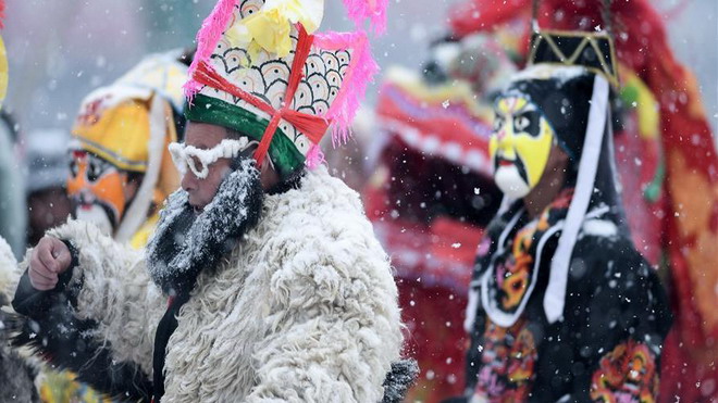 當日是農歷正月十二,青海省西寧市大通回族土族自治縣春節期間社火展演活動正式開啟。
