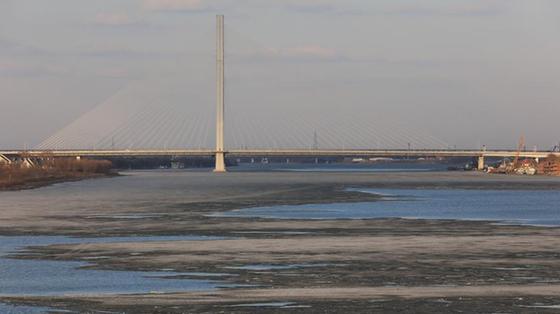 哈爾濱連續多日氣溫達到20℃,致使松花江哈爾濱市區段出現“半江流水半江凍冰”的特殊景象。