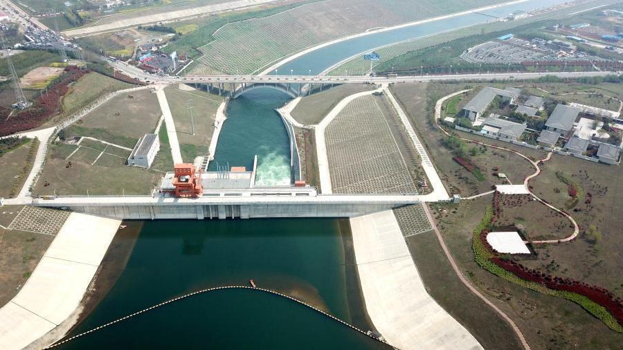 河南淅川,航拍“南水北調中線工程”渠首大壩。南水北調中線工程的源頭是丹江口水庫,渠首在河南省南陽市淅川縣丹陽村。