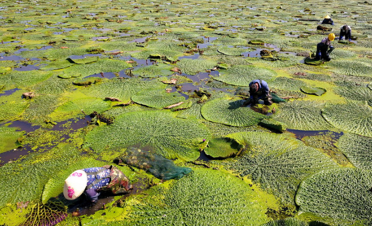 罕見的壯觀場面!萬余畝芡實迎來收獲季