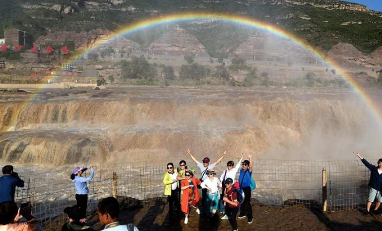 山西臨汾:黃河壺口瀑布現“彩虹門”景觀
