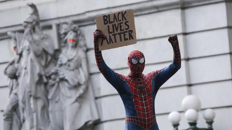 由美國明尼蘇達州明尼阿波利斯市非裔男子弗洛伊德遭白人警察暴力執法而死一事引發的各種抗議活動仍在紐約持續進行。