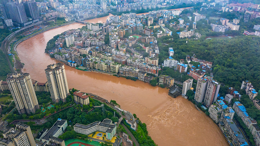2020年7月1日,重慶市綦江區綦江河水位上漲。