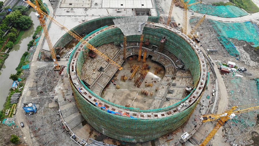 杭州亞運會乒乓球館主體結構完工 “玉琮”輪廓初現