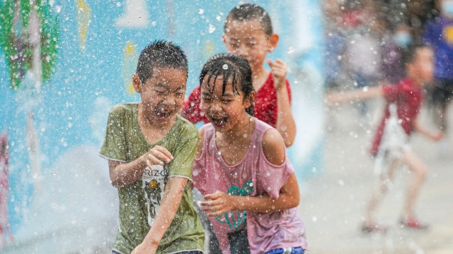 在浙江省杭州市富陽區東洲街道紅旗村的勞動教育實踐基地,數百名中小學生與家長參加了趣味插秧和渾水摸魚等活動,體驗農事勞動。