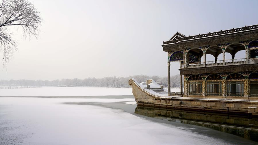 1月5日晚,北京迎來2020年首場降雪。雪后的頤和園景色迷人,宛若畫卷。