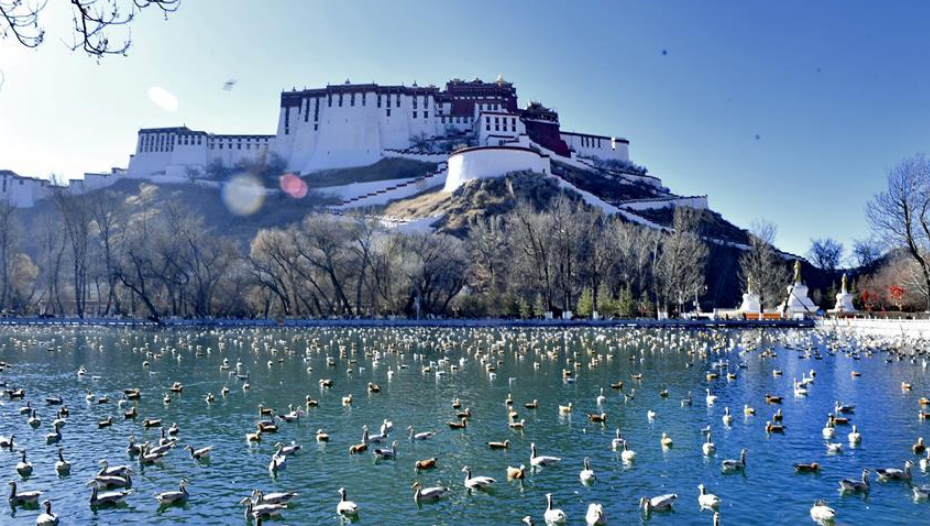 冬日,西藏拉薩市布達拉宮腳下的龍王潭公園成了鳥的“天堂”。數不盡的斑頭雁、赤麻鴨、紅嘴鷗在這里嬉戲、覓食。