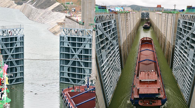 當(dāng)日,廣西大藤峽水利樞紐工程船閘試通航啟動(dòng),預(yù)計(jì)一年后可正式通航。