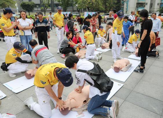 深圳市賽場救護隊的專業人員在現場為蓮花一村的社區居民普及了大眾急救技能,并指導大家進行模擬心肺復蘇的演練,中老年朋友則享受了免費的體質檢測服務。