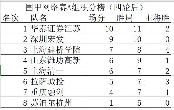 附1:2020年“華為手機杯”中國圍棋男子甲級隊聯賽網絡熱身賽AB兩組積分排名表