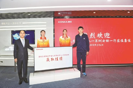 昨天,八一深圳女排來到康佳集團深圳總部參觀和慰問。在活動的智能體驗環節,姑娘們興致勃勃地上前體驗。
