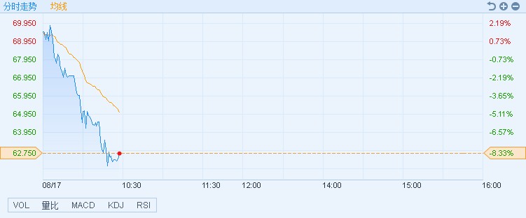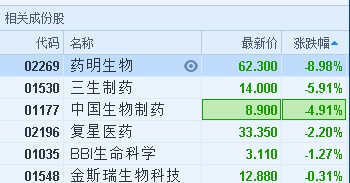 智通財經APP獲悉,受產業政策影響,醫藥股普跌,藥明生物(02269)領跌板塊,連續三個交易日下挫,跌逾兩成。截至10時26分,跌8.33%,報價62.75港元,成交額2.27億。