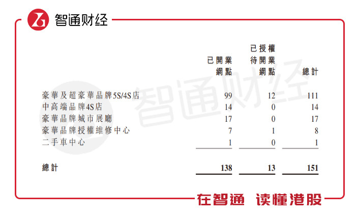4S店仍是正通投資的重點,智通財經APP了解到,上半年該公司建成開業4家豪華汽車運營網點,其中奔馳一家,寶馬一家,紅旗兩家,截至到6月60日,共有138家4S店,已授權待開業的有13家,合計151家。