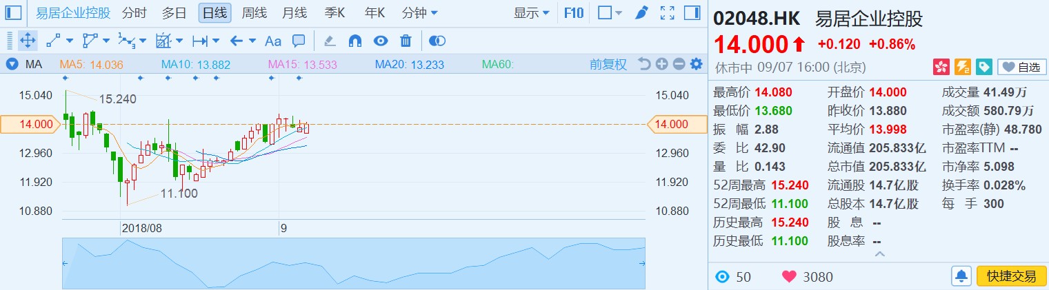 易居是國內最大的房地產服務商,伴隨港股一波熱鬧非凡的上市潮,成立剛滿18年的易居于7月20日風風火火上市,之后也在新股“破發潮”中慘遭錯殺,一度下探至11.1港元,但價值總會回歸,隨著易居的商業模式和業績被市場認可,股價逐步回升。