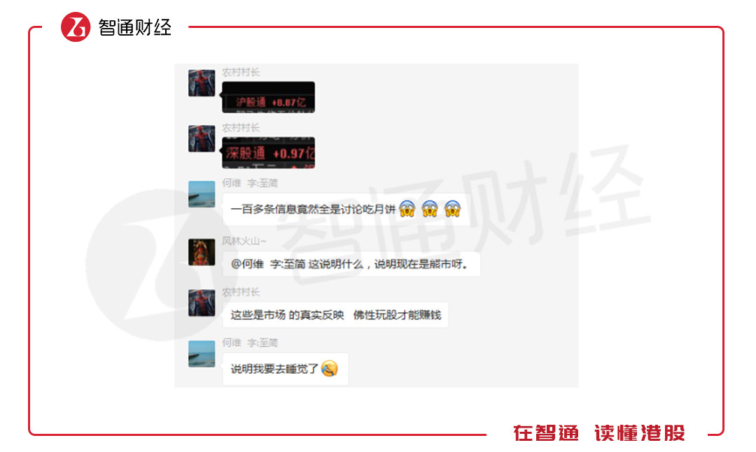 被黑天鵝痛擊一番后,市場悲觀情緒明顯占據了上風。智通財經APP觀察到,某500人的投資大群雖活躍度照常,但全變成了說“新財富風月”、“品月餅”,絲毫沒有往日的“談市場、擺數據、說動向”,甚至不惜爭個臉紅耳赤的情形。