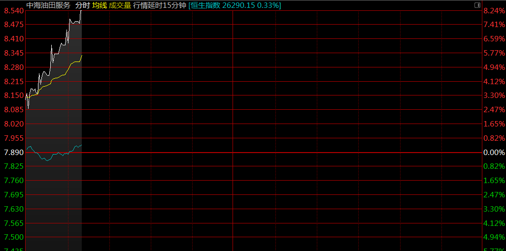 智通財(cái)經(jīng)APP獲悉,受國(guó)際原油價(jià)格影響,石油股全線走強(qiáng)。截至10時(shí)13分,中海油服(02883)漲8.11%,報(bào)價(jià)8.53港元,中海油(00883)漲3.19%,報(bào)14.86港元,中石油(00857)漲1.96%,報(bào)6.24港元,中石化(00386)漲0.72%,報(bào)7.01港元。