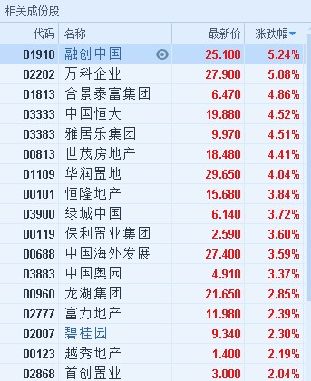 智通財經APP獲悉,多地按揭利率出現松動放款加速,內房股集體上揚。