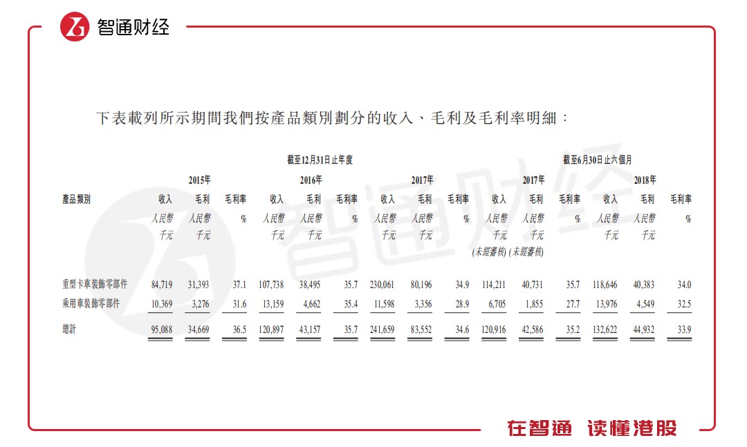 此外,天瑞在招股書中指出,就公司近期財務表現而言,公司的收入從截至2017年10月31日止10月的約1.97億元減至截至2018年10月31日止10個月的約1.92億元,略微減少為2.6%。然而,公司截至2018年10月31日止4個月的毛利率為35.8%,略高于上年同期的34.0%。鑒于收入減少并不明顯,以及與2018年上半年相比,公司截至2018年10月31日止4個月實現穩定的毛利率及月平均毛利,因此并無跡象顯示公司的重型卡車裝飾零部件業務分部會顯著下跌。