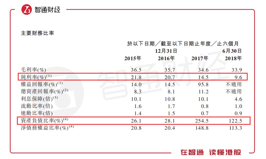此外,由于公司在2018年上半年發行了約6460萬元的股份,致使公司總權益增加從而降低了負債率。但截至2018年6月30日公司的資產負債比率依然高達122.5%,其流動比率僅為1倍也顯示公司流動資金并不寬裕。