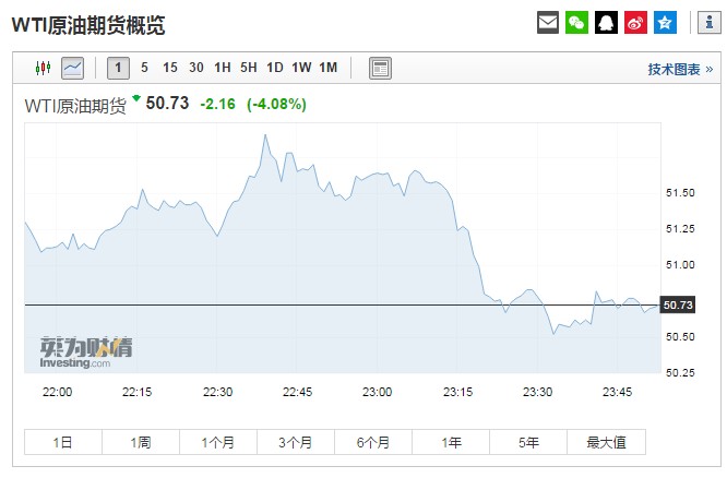 截至發稿,WTI原油跌4.08%報50.73美元/桶。