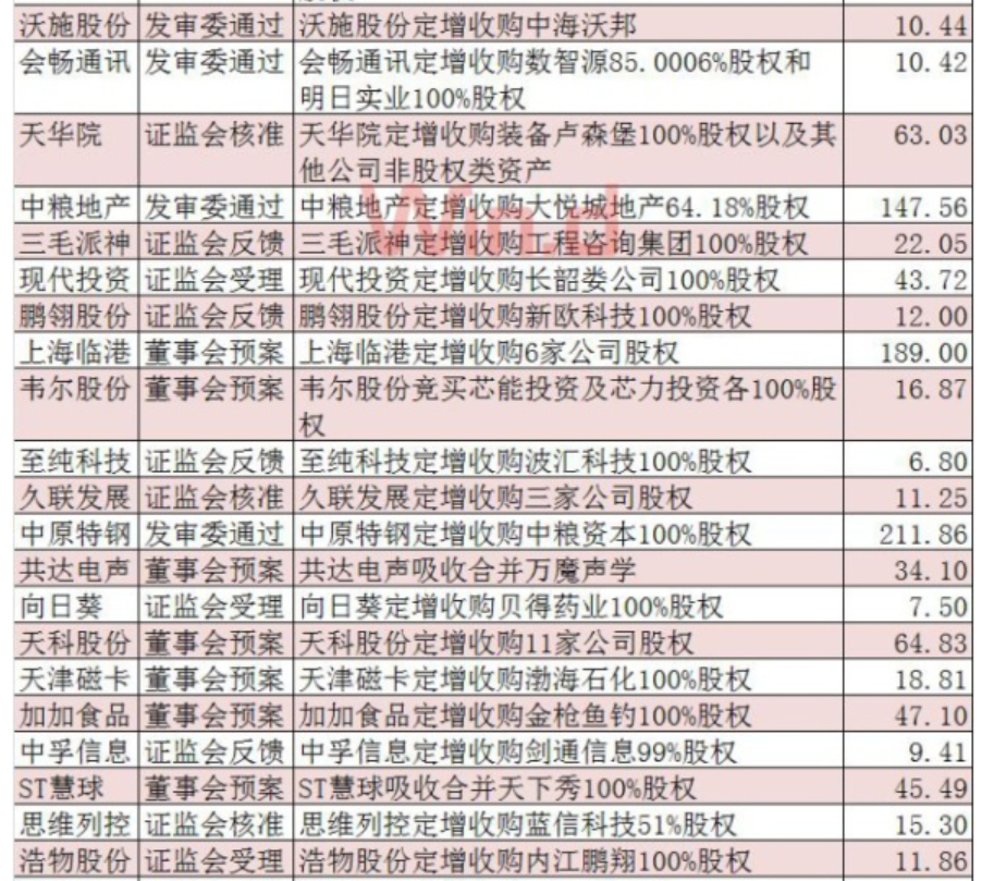 并購重組經歷近二年的低谷后,政策由緊到松,目前快速回暖,概念股逐步走強,近日又有多家公司公布并購方案;